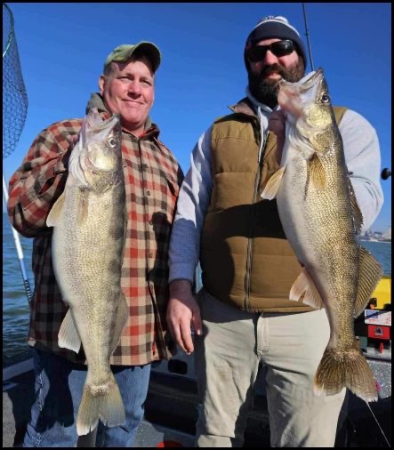 Capt Denny Sharrone and Mike Ruffo put a beatdown on the Cleveland area walleyes this week. How about that boating in February!? (photos courtesy of Mike Ruffo).