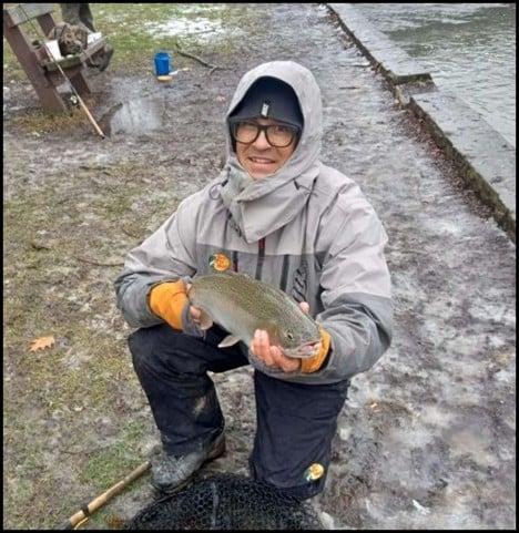 Vinny caught his first rainbow trout of the season on a Berkey minnow under a float (photo courtesy of Brian DiGioia).